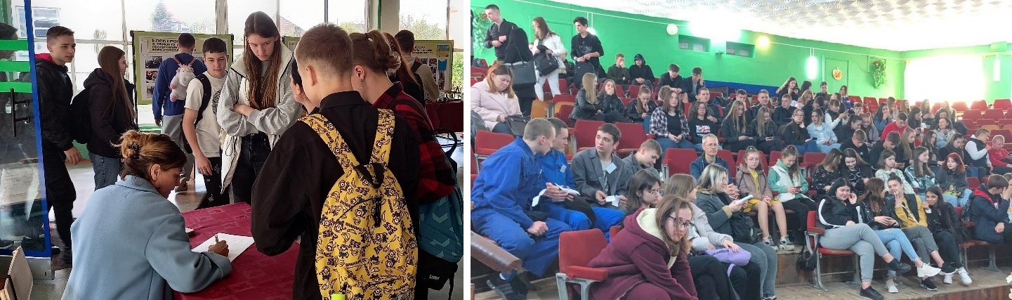 Фахівець з працевлаштування Мукачівської філії Закарпатського обласного центру зайнятості Оксана Зварич ознайомила присутніх з реаліями сучасного ринку. Заступник директора ліцею з виховної роботи Олександр Кумечко розповів про переваги професійної освіти та правила прийому на навчання в 2023 році.