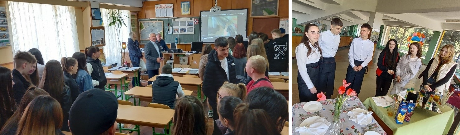 Розпочав проведення Дня відкритих дверей заступник директора ліцею з навчально-виробничої роботи Юрій Коструб. В своїй промові він зупинився на важливості та актуальності робітничих професій сьогодні, підкреслив потужний педагогічний потенціал ліцею та закликав старшокласників стати в 2023 році здобувачами освіти нашого навчального закладу.