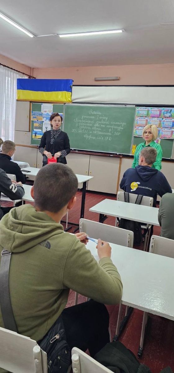 До учасників І етапу Всеукраїнської учнівської олімпіади з української мови та літератури заступниця директора з НР Світлана Шпеник, яка наголосила, що участь в олімпіаді – це можливість продемонструвати свої знання та вміння, адже Україна чекає на творчих та розумних громадян.