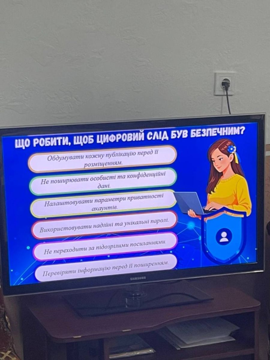 З цієї нагоди заступниця директора ліцею з ВР Оксана Кочан провела цікавий і корисний захід для студентів «Кібергігієна: твій цифровий захист». Гасло цьогорічного заходу: «Разом проти шахрайства в інтернеті».