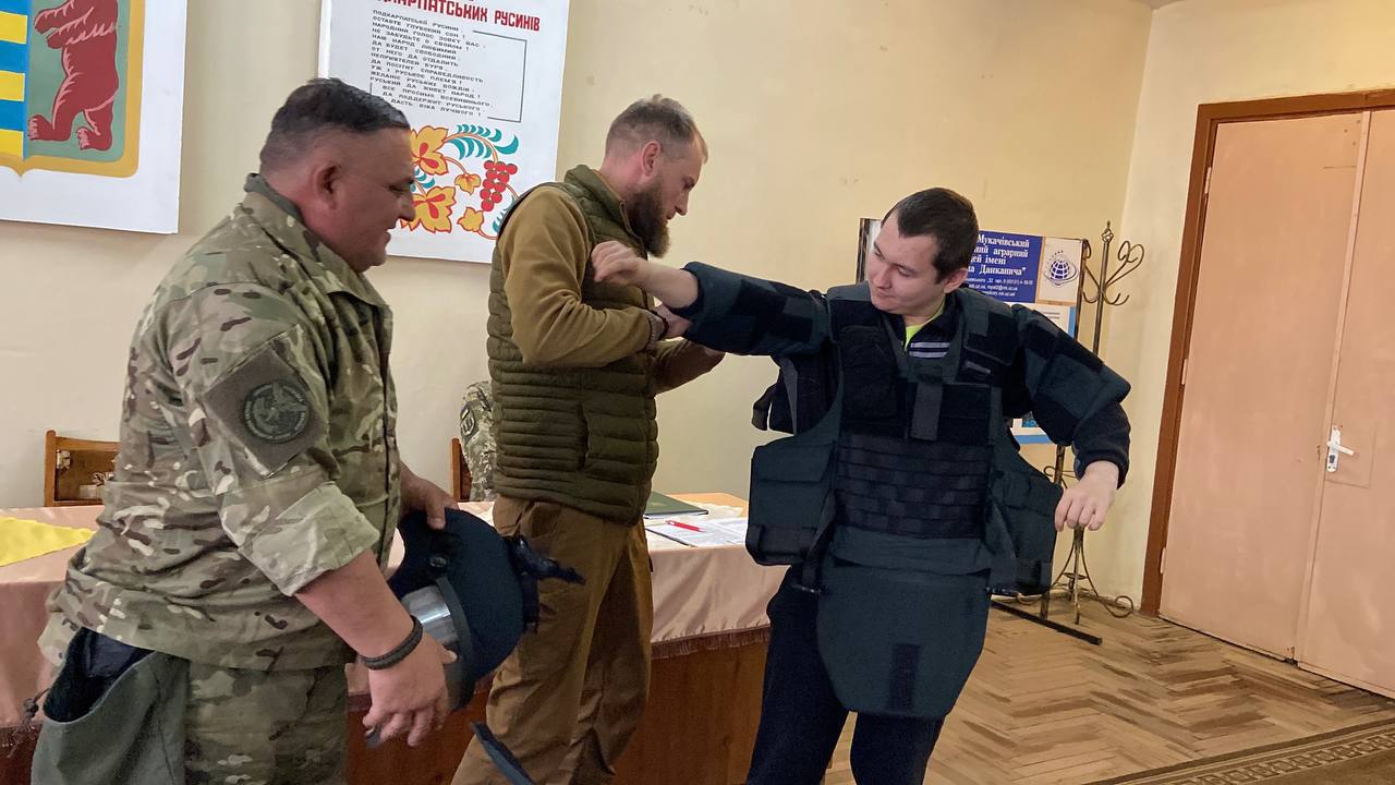 Ветерани російсько-української війни продемонстрували учасникам заходу екіпірування військового сапера. Бажаючі студенти змогли приміряти на себе важку амуніцію, якою оснащені воїни підрозділів Сил оборони України, які розміновують територію нашої держави, засмічену рашистами вибухонебезпечними предметами. Варто відзначити, що від початку повномасштабного вторгнення агресора на територію України нашими бійцями знешкоджено більше мільйона вибухонебезпечних предметів.