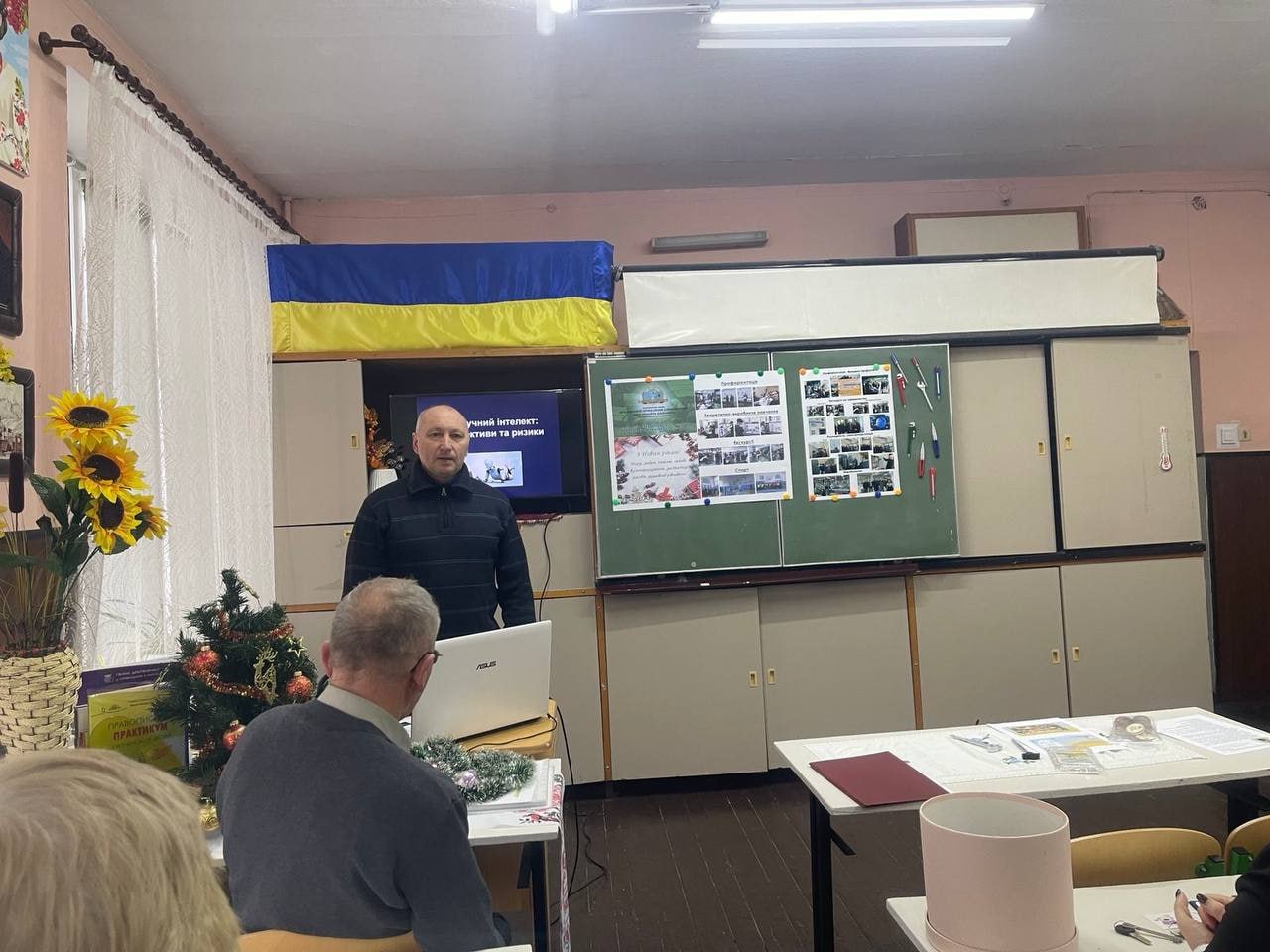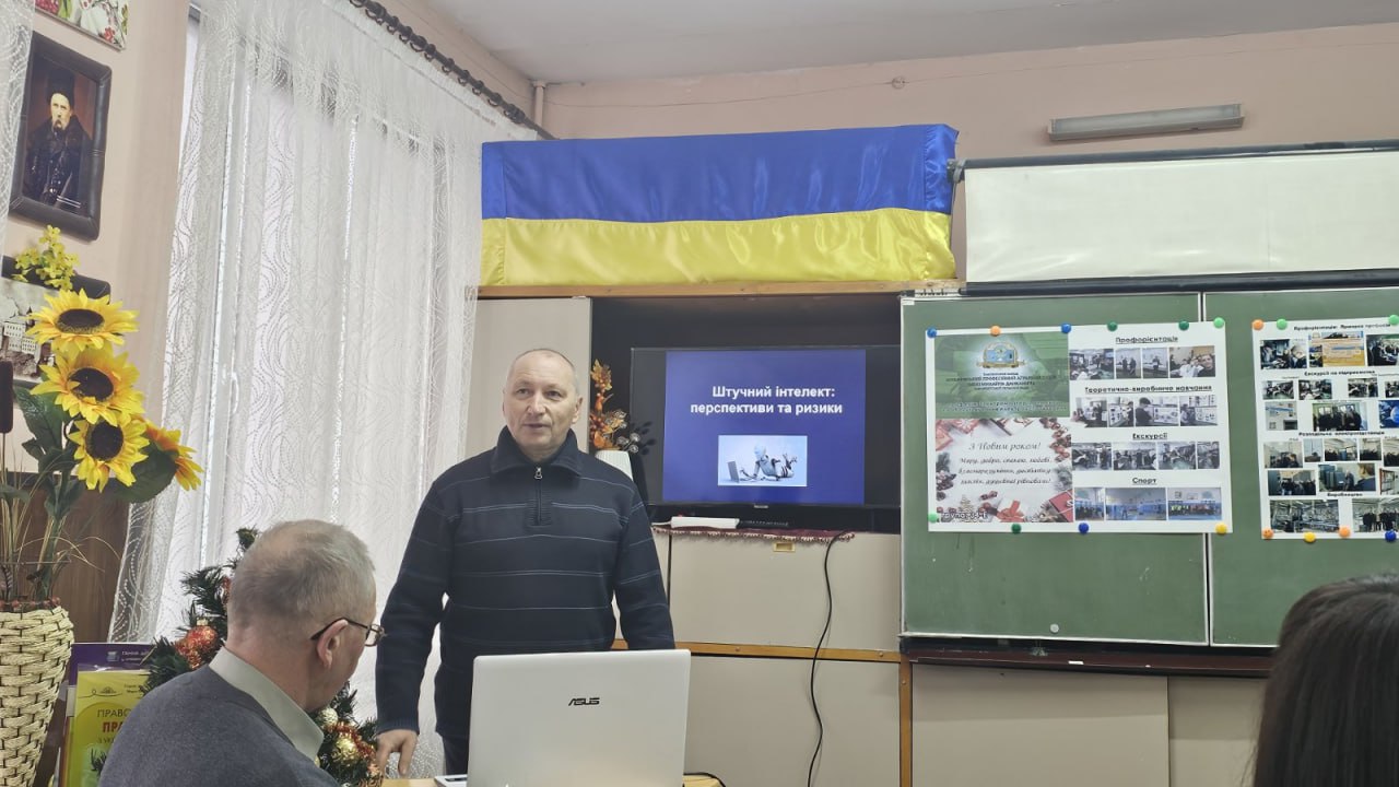 Викладач хімії Михайло Лендєл у своєму виступі «Штучний інтелект: перспективи та ризики» зосередив увагу на можливостях використання інструментів штучного інтелекту в освітньому процесі, зокрема для візуалізації складних хімічних процесів, підготовки дидактичних матеріалів та індивідуалізації навчання. Окремо було наголошено на ризиках некритичного використання ШІ, важливості формування академічної доброчесності та розвитку в здобувачів освіти навичок критичного мислення.