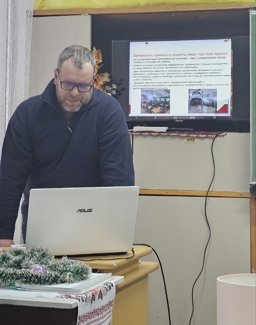 Практичний вимір професійної підготовки було представлено майстрами виробничого навчання. Майстер з професії «Слюсар з ремонту колісних транспортних засобів» Петро Чизмар поділився досвідом формування професійних компетентностей здобувачів освіти в умовах сучасних вимог ринку праці, адже сьогодні автомобільна галузь України перебуває в процесі активної трансформації: техніка стрімко ускладнюється, а попит на кваліфікованих слюсарів з ремонту колісних транспортних засобів зріс майже на 40 відсотків. Відповіддю на ці виклики часу стало створення навчально-практичного центру, ініційоване та реалізоване за підтримки директора ліцею Ковбаска Василя Васильовича. Ключовою перевагою центру є сучасна лабораторія електронної діагностики, де здобувачі освіти опановують роботу з мультимарковими діагностичними сканерами та набувають практичних навичок, необхідних для обслуговування автомобілів нового покоління.