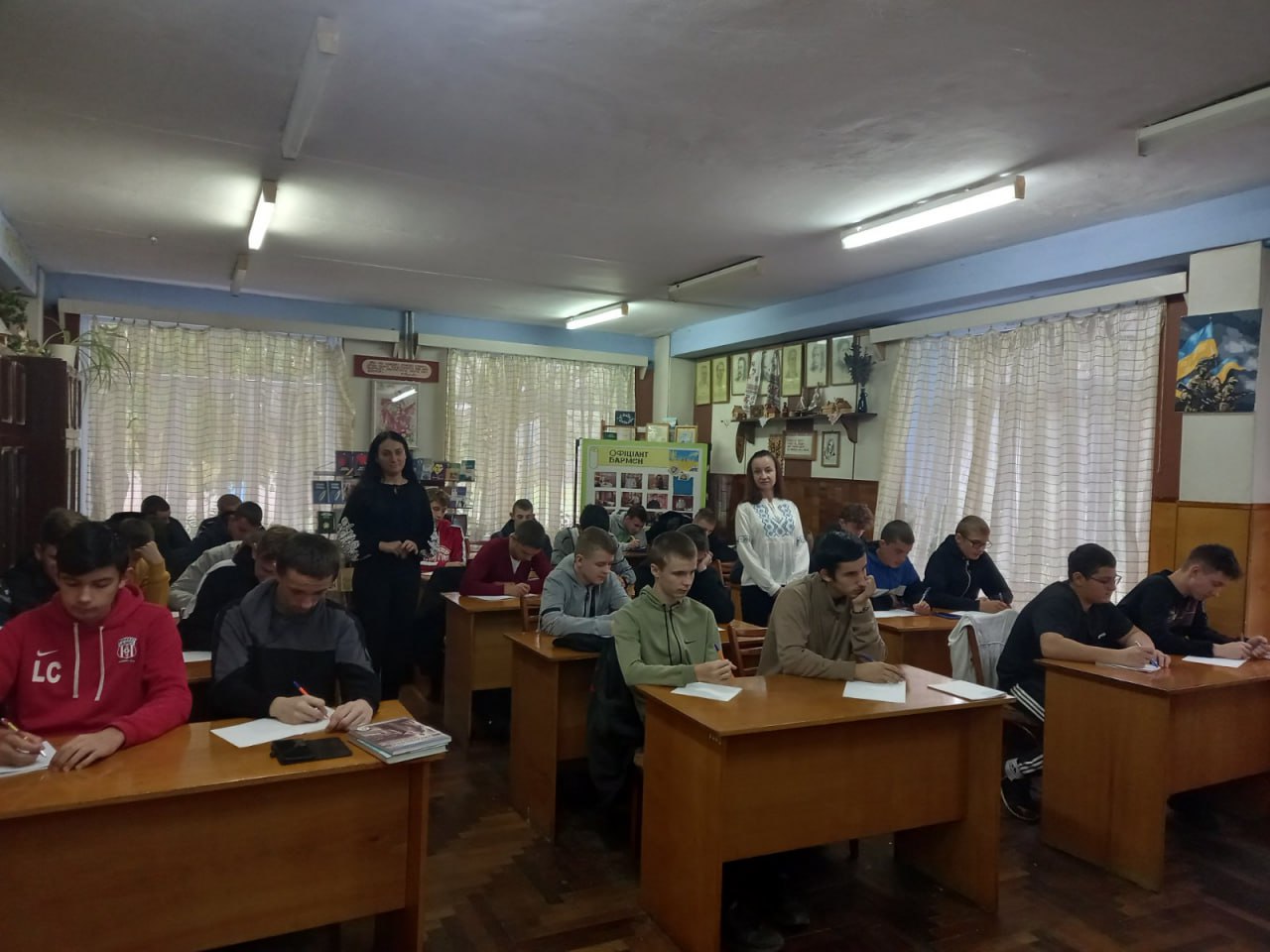 До написання Радіодиктанту долучилися педагоги та здобувачі освіти нашого ліцею. Учасники диктанту уважно слухали кожне слово та записували його. Лише легкий шум кульмінував у моменти мовчання, коли учасники фіксували слова, які нагадували нам про важливість національного об'єднання та патріотизму.