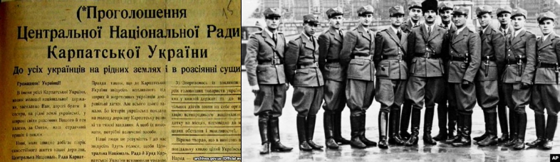 Першим Президентом незалежної Карпатської України став Августин Волошин, прем’єр-міністром – Юліан Ревай. Сойм визнав державною мовою українську, затвердив державний гімн й державний прапор із синього та жовтого кольорів. Проте держава проіснувала зовсім недовго: 40-тисячному угорському корпусу, який вдерся на Карпатську Україну без оголошення війни, чинили опір лише 1,5-2 тисячі «січовиків», які зуміли добути зброю..jpg)