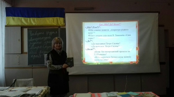 Цього ж дня викладач української мови та літератури Джуган Тамара Павлівна провела відкритий урок у 12 групі а/с з української літератури на тему: «Література рідного краю. Петро Скунць. Мій рідний край». Учні ознайомилися з життєвим і творчим шляхом письменника, з віршами про красу рідного краю, вдосконалили навички ідейно-художнього аналізу творів. Присутні прослухали пісню у виконанні В.Зінкевича на слова П. Скунця «Сині гори» та переглянули відеоролик.