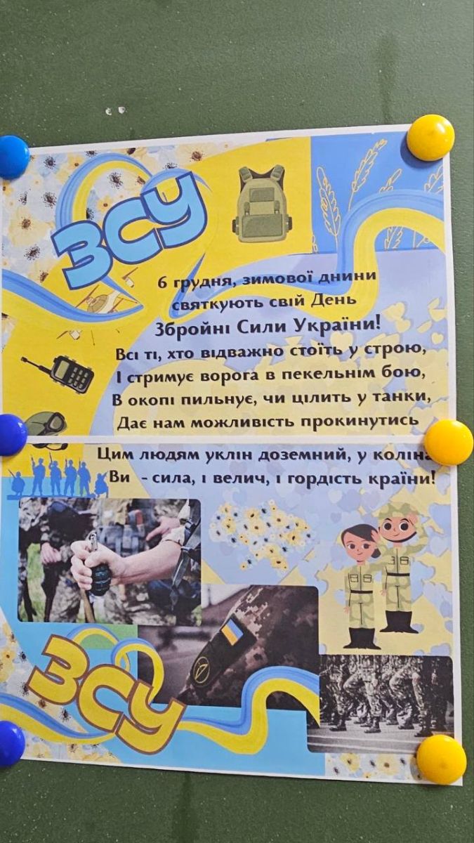 6 грудня вся українська спільнота відзначає День Збройних сил України – свято на честь тих, хто нині захищає територію нашої Батьківщини від підступного і жорстокого ворога, піклується про безпеку та зміцнення обороноздатності Української держави. Це свято хоробрих військовослужбовців, завдяки незламному духу яких наша Вітчизна зберігає свою незалежність.