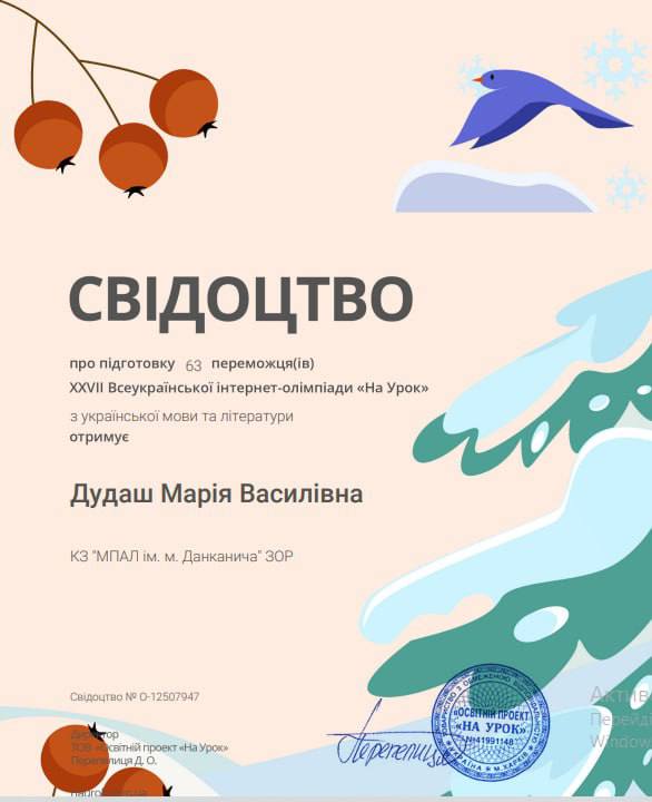 У КЗ «МПАЛ імені Михайла Данканича» ЗОР за ініціативою викладачки української мови та літератури Марії Дудаш здобувачі освіти активно долучилися до XXVII Всеукраїнської онлайн-олімпіади «На Урок» (Зима -2026). У зимовій сесії взяли участь 102 ліцеїсти, що свідчить про високий рівень зацікавленості молоді інтелектуальними змаганнями та прагненням до саморозвитку.
