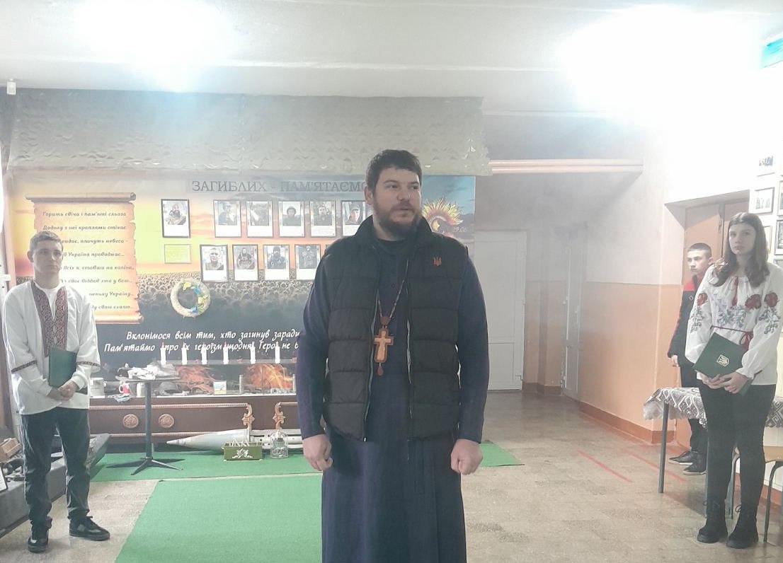 У вступному слові викладач предмету «Захист України» Олександр Кумечко зазначив, що через 12 днів виповниться чотири роки героїчного спротиву України проти російській агресії. Це – більше, ніж тривала війна з 22 червня 1941 року по 9 травня 1945 року. Сили оборони України ліквідували більше 1 мільйона 250 тисяч російських загарбників і численну кількість озброєння та бойової техніки ворога.
